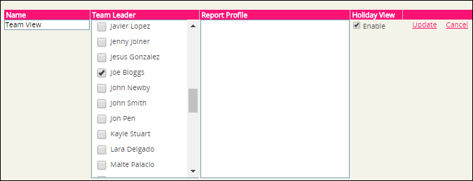 Sets the holiday view to be enabled for the team, the holiday view is a button on the holiday request page which allows a team to see each other's holidays. This is currently the primary use for teams in Tempora.