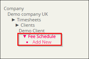 - Click Timesheets > Clients > (Client name) > Fee Schedule > Add new on the menu: