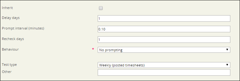 Behaviour No prompting - The prompt will not activate even if timesheets are late.